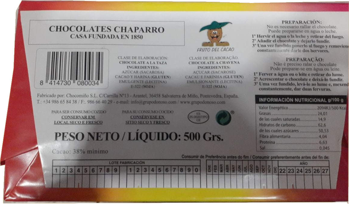 CHOCOLATE TAZA CHAPARRO 500GR