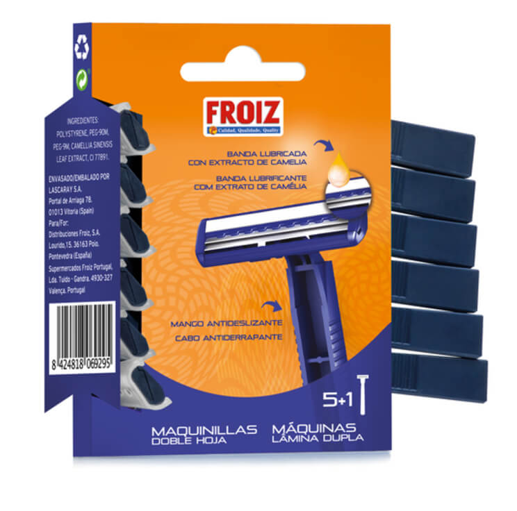 * Maquinilla desechable FROIZ 2 hojas 5+1u con banda lubricante