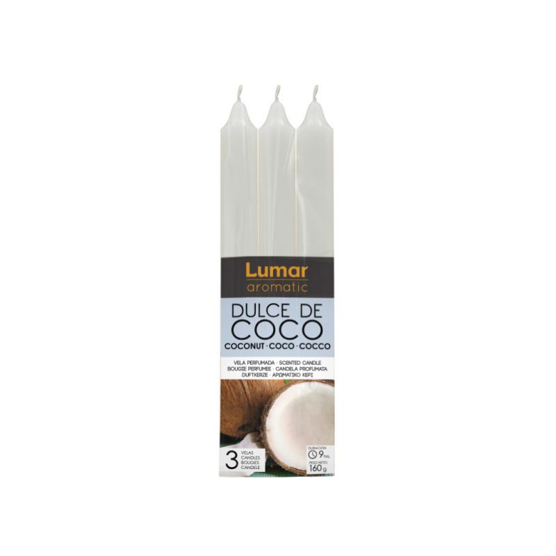 Pack 3 Velas Candelabro Blanca LUMAR Coco Dulce